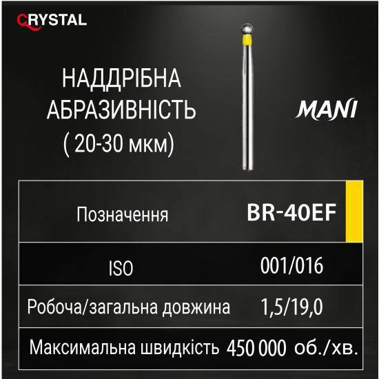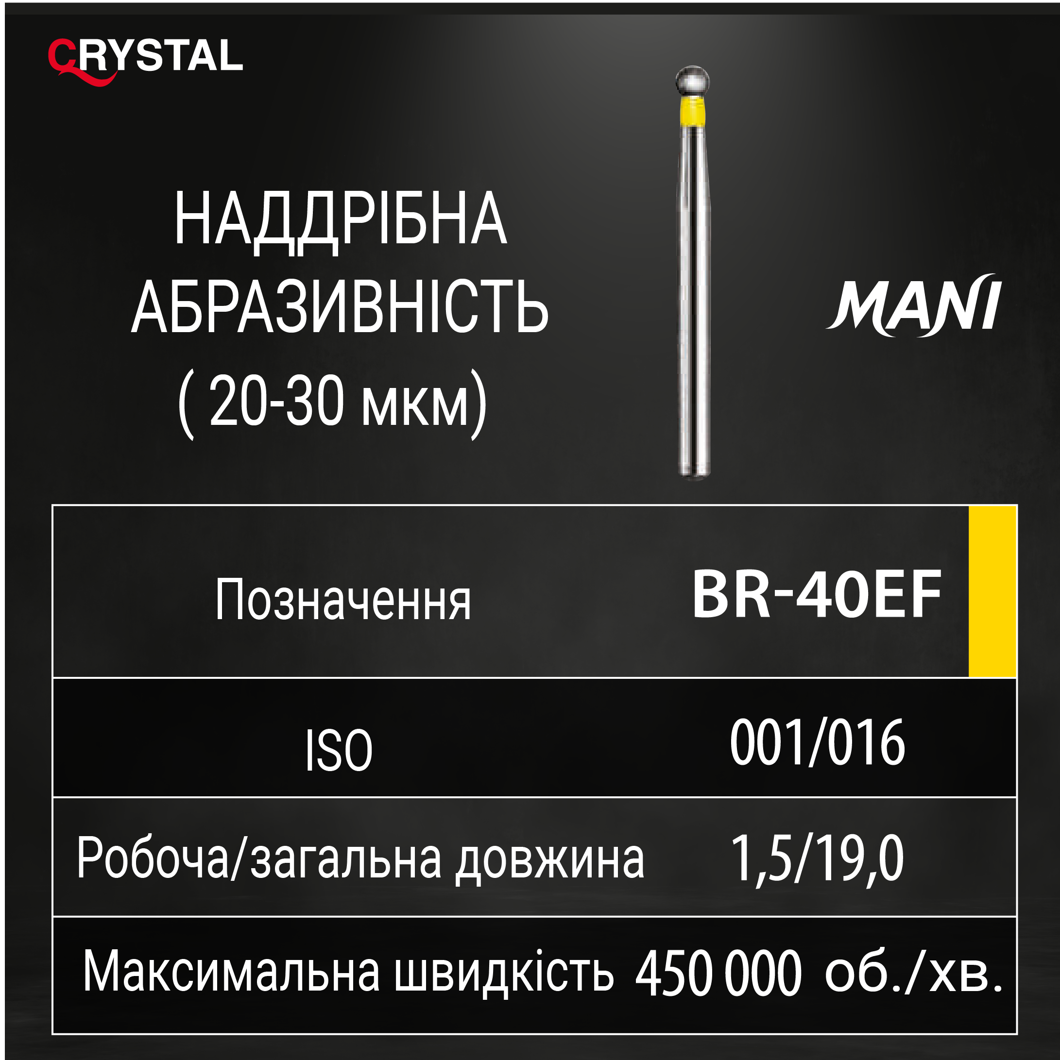 Алмазний бор BR-40EF (Ball Round - Кулястий). Кулястий, ISO 001/015, жовтий, Mani (Japan)
