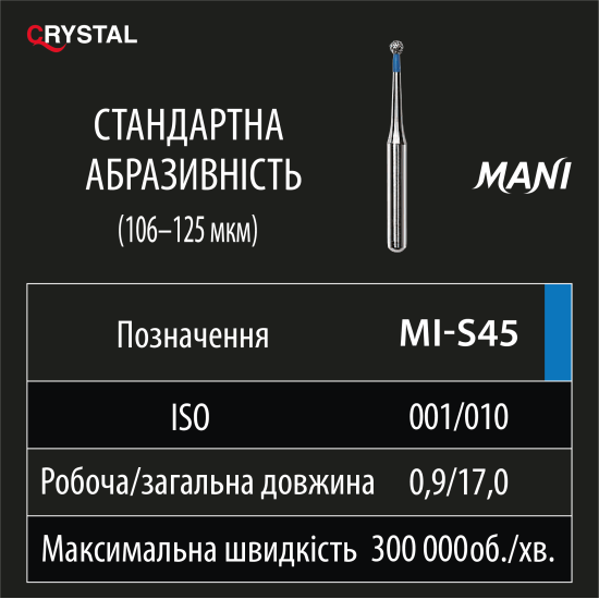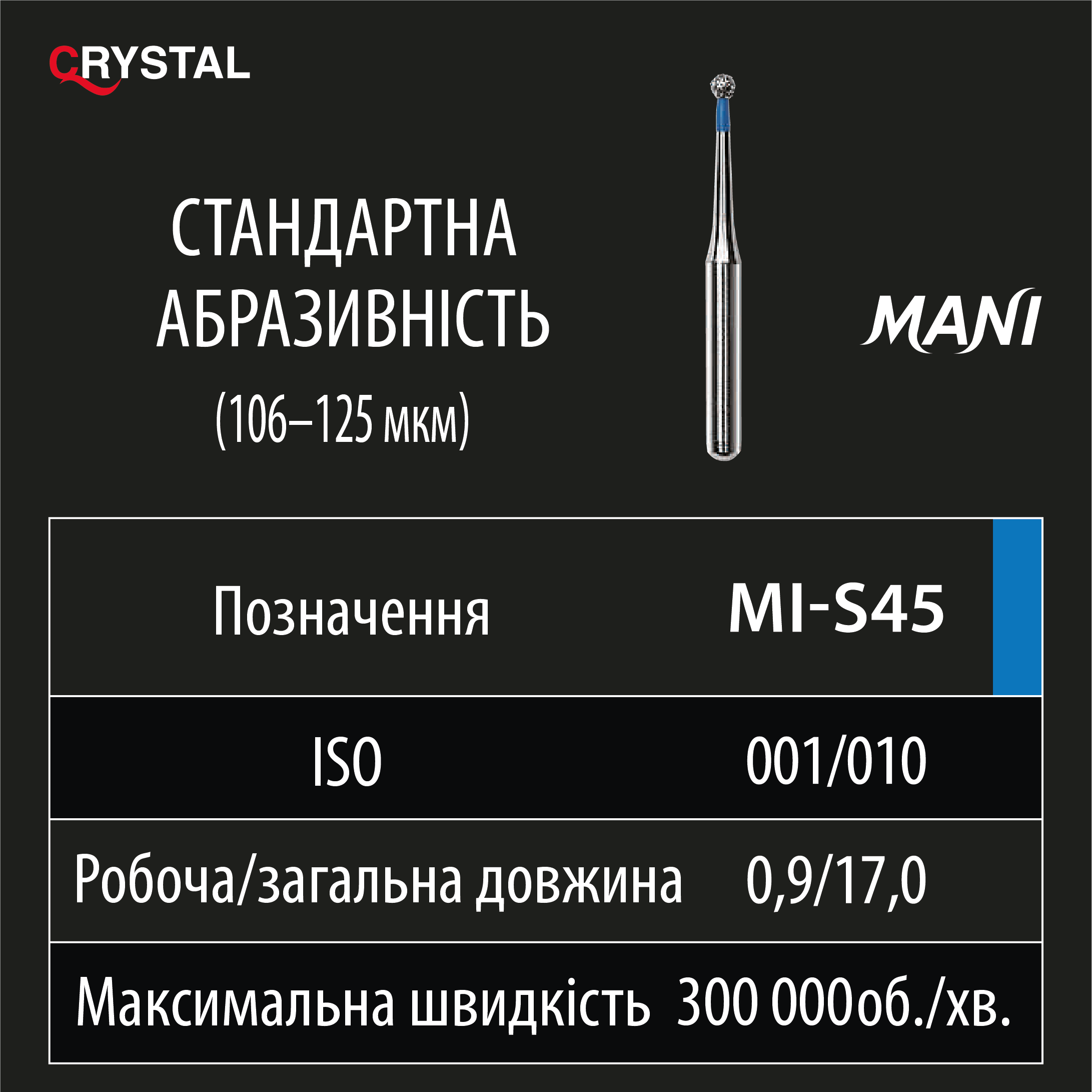 Алмазний бор MI-S45 (Minimum Intervention - Мінімальна інтервенція). Кулястий, ISO 001/008, синій, Mani (Japan)