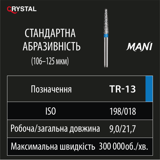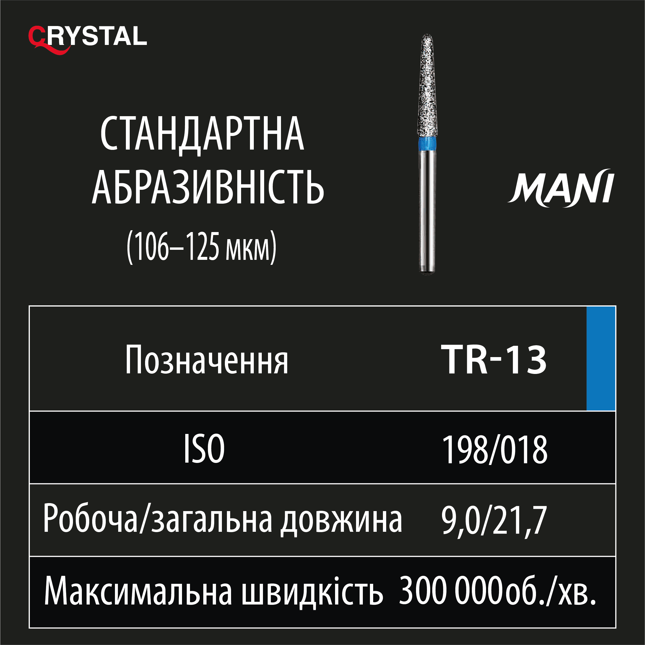 Алмазний бор TR-13 (Taper Round - Конусоподібний закруглений кінчик). Закруглений конус, ISO 199/018, синій, Mani (Japan)