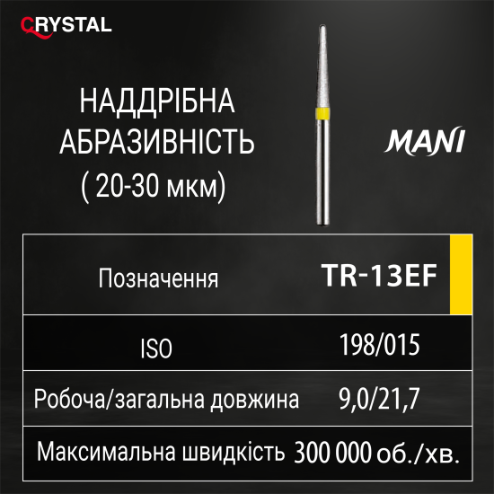 Алмазний бор TR-13EF (Taper Round - Конусоподібний закруглений кінчик). Закруглений конус, ISO 198/018, жовтий, Mani (Japan)