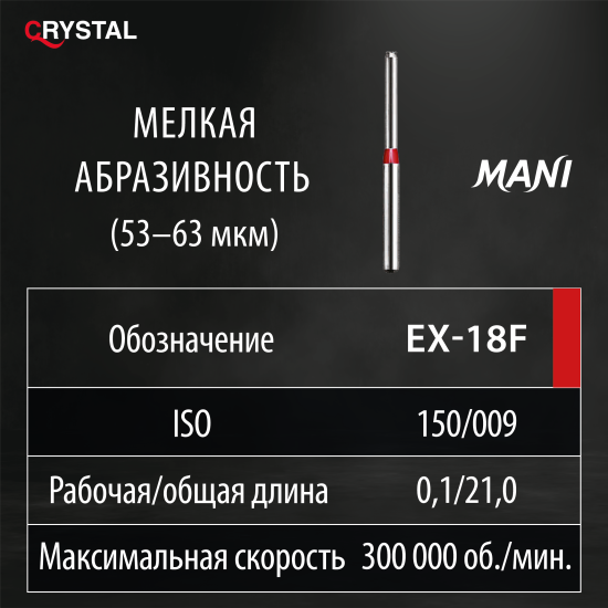 Алмазний бор EX-18F (Extra Shape - Додаткова форма). Фісура торцевий, ISO 179/010, червоний, Mani (Japan)