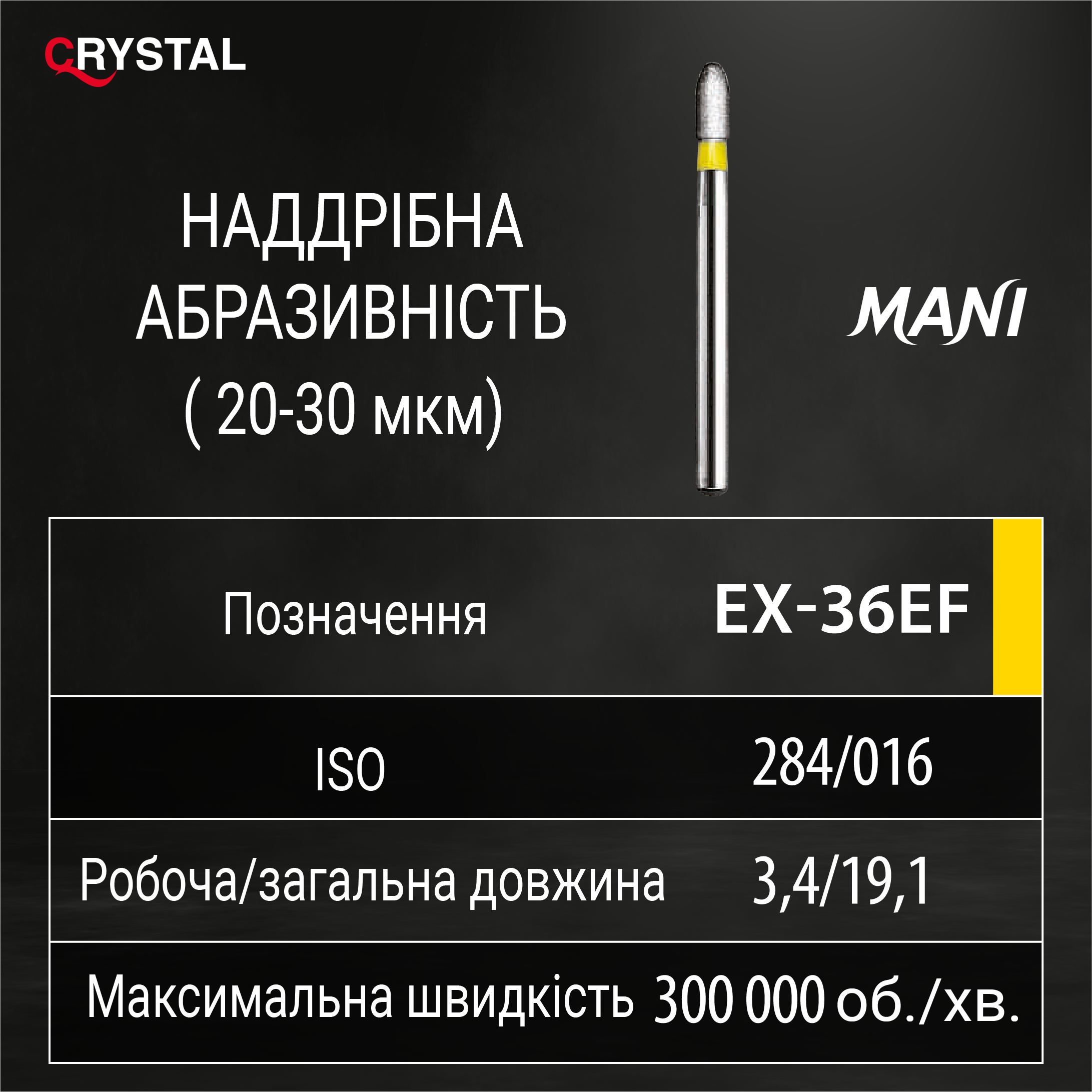 Алмазний бор EX-36EF (Extra Shape - Додаткова форма). Закруглена фісура, ISO 284/016, жовтий, Mani (Japan)