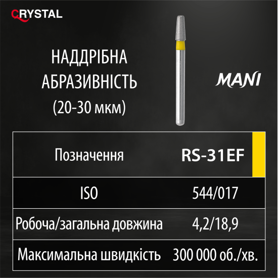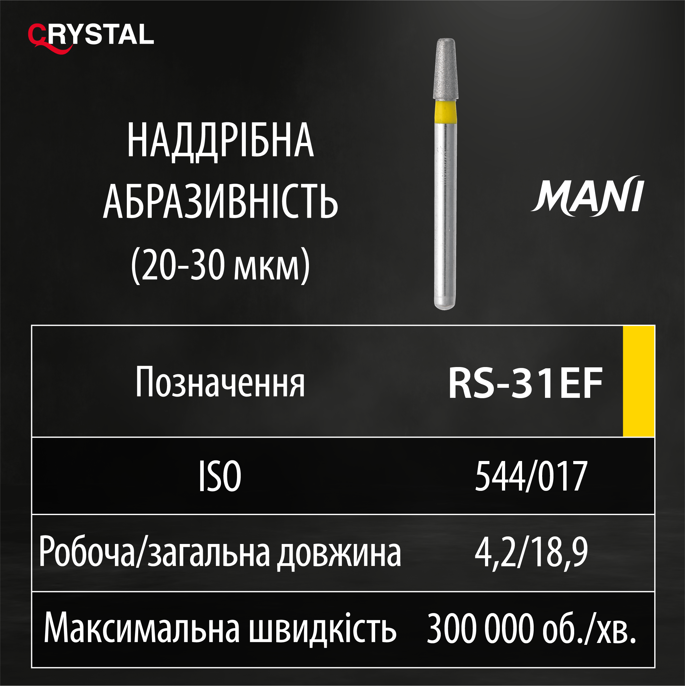 Алмазний бор RS-31EF (Round Shoulder - Кругле плече). Закруглений конус, ISO 544/017, жовтий, Mani (Japan)