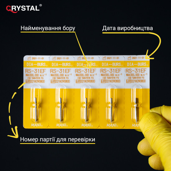 Використовується для формування закруглених уступів під час препарування під металокерамічні, металеві коронки й коронки на каркасі з діоксиду цирконію. Бор дозволяє сформувати скошений уступ з кутом скосу 100-110 градусів (жолоб).