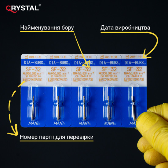 Алмазний бор SF-32 (Straight Flat - Прямий плоский кінчик). Фісура, ISO 109/013, синій, Mani (Japan)