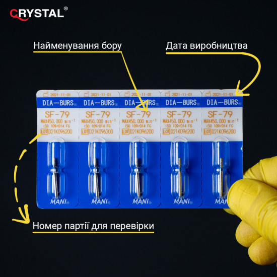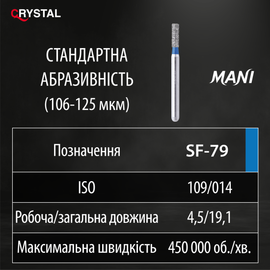 Алмазний бор SF-79 (Straight Flat - Прямий плоский кінчик). Фісура, ISO 109/014, синій, Mani (Japan)