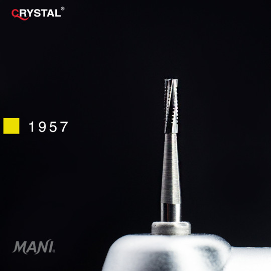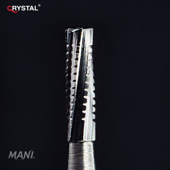 Карбідний бор, для видалення пломб (поперечні насічки), № 1957. Оскільки робоча частина й хвостовик є одним суцільним елементом, ймовірність пошкодження твердосплавного бора MANI є мінімальною.ЗВОРОТНИЙ КОНУС підходить для створення піднутрень.