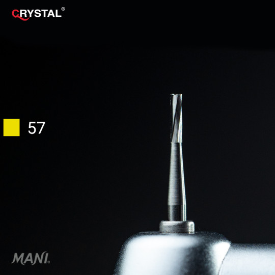 Карбідний бор, фісурний із плоским кінчиком (без насічок), №57. Оскільки робоча частина й хвостовик є одним суцільним елементом, ймовірність пошкодження твердосплавного бору MANI є мінімальною.Матеріал: карбід вольфраму і нержавіюча сталь.