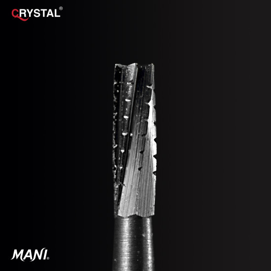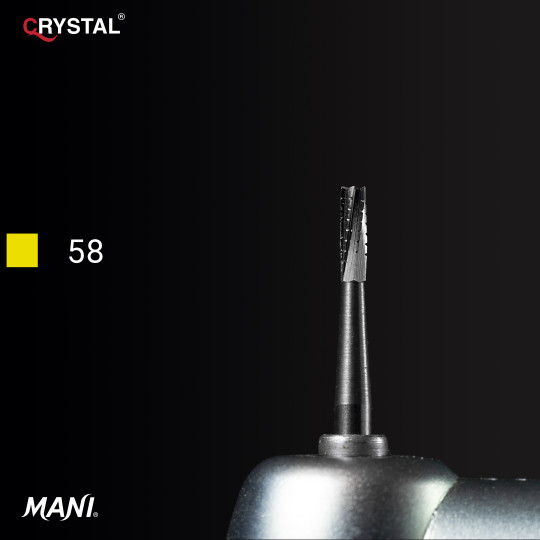 Карбидний бор №58, фісурний із плоским кінчиком (без насічок). Оскільки робоча частина і хвостовик є одним суцільним елементом, ймовірність пошкодження твердосплавного бору MANI є мінімальною.Матеріал: карбід вольфраму і нержавіюча сталь.