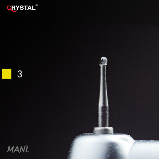 Карбідний бор, кулястий (без насічок), №3. Оскільки робоча частина й хвостовик є одним суцільним елементом, ймовірність пошкодження твердосплавного бору MANI є мінімальною.КУЛЯСТИЙ БОР є ефективним для розширення каріозної порожнини.