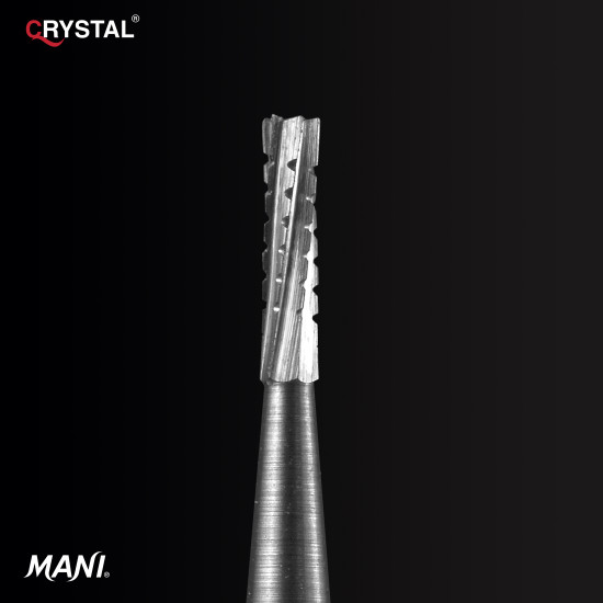 Карбідний бор №556 фісурний із плоским кінчиком (поперечні насічки). Оскільки робоча частина і хвостовик є одним цілісним елементом, ймовірність пошкодження твердосплавного бора MANI є мінімальною.Матеріал: карбід вольфраму і нержавіюча сталь.