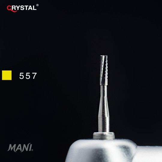 Карбідний бор №557 фісурний із плоским кінчиком (поперечні насічки). Оскільки робоча частина й хвостовик є одним суцільним елементом, ймовірність пошкодження твердосплавного бора MANI є мінімальною.Матеріал: карбід вольфраму і нержавіюча сталь.