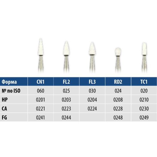 Dura-White TC1 CA 0230 — полірувальні камені з оксиду алюмінію (Al₂O₃) із серії Dura-White від Shofu. Форма TC1 забезпечує делікатну поліровку у пришийкових та контактних ділянках, а також у важкодоступних зонах.