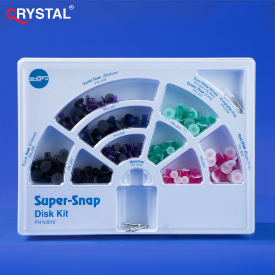 Super-Snap — зручна кольорокодована система дисків і смужок для контурингу, фінішної обробки та високоглянцевого полірування композитних реставрацій у фронтальній та жувальній ділянках. Еластичний тримач без металевого центру дозволяє безпечно працювати біля емалі та ясенного краю, а гнучкі диски добре адаптуються до анатомії зуба.
