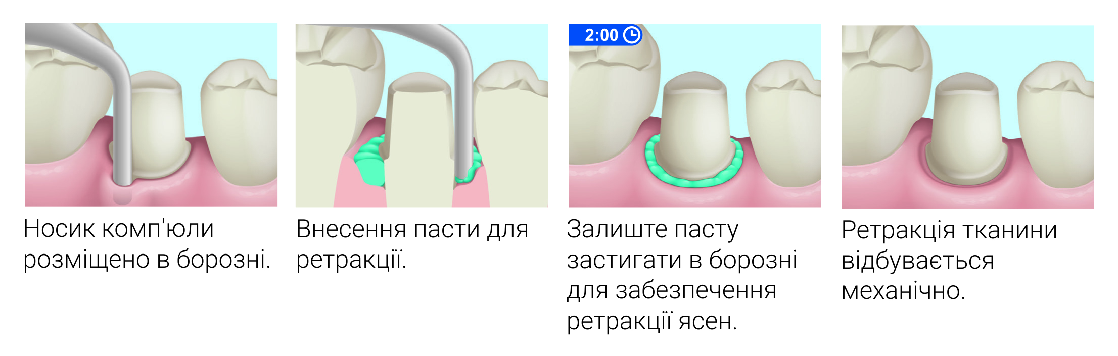 й ефективну тимчасову ретракцію зубодесневої борозенки і містить в'яжучий